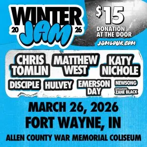 SAVE THE DATE! Thursday March 26, 2026...Winter Jam returns to Fort Wayne at Memorial Coliseum. This is not a ticketed event. Just $15 donation at the door to see Chris Tomlin, Matthew West, Katy Nichole, Disciple, Hulvey, Emerson Day and Newsong, along with speaker Zane Black. We'll see you there!